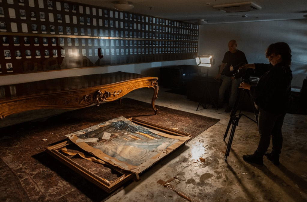 But there are challenges. Some works were vandalized beyond repair. The entrance to the presidential office is still missing glass. The Supreme Court lost 31 pieces and a Brazilian flag. Restoring some items will require the construction of new contraptions to avoid wrecking them further.