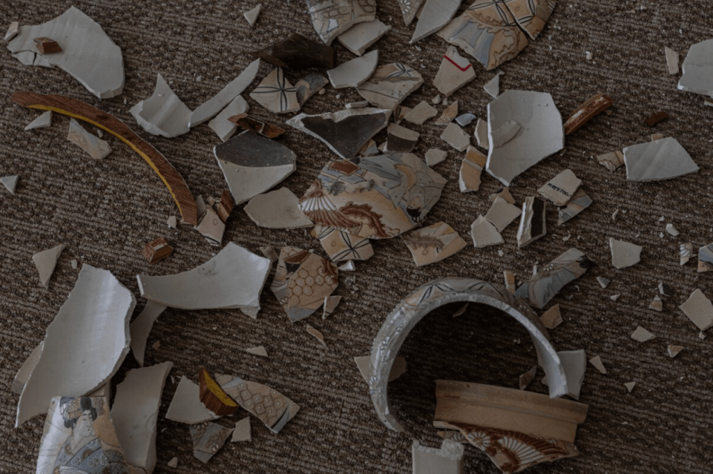 They include vases smashed to smithereens. One option is to put the vases back together using the pieces they have, leaving gaps for the ones that are missing. Another is to fill the gaps with dental ceramics painted with the original pattern.